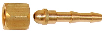 1/4" oikeakätisellä mutterilla, letkukara 6-8 mm letkuun.