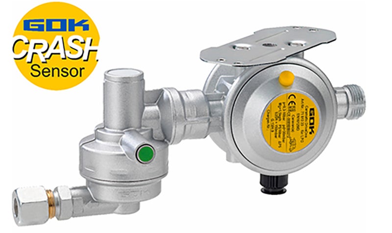 Törmäyssuojalla varustettu säädin yhdessä letkun kanssa, jossa letkurikkoventtiili kiinnittyy suoraan kaasupulloon mahdollistavat kaasulaitteiden käyttämisen ajon aikana.